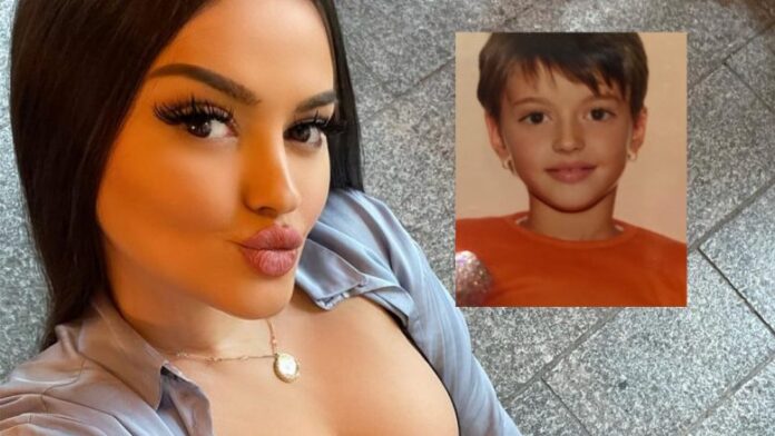 Bëhet fjalë për një imazh, ku ajo si fëmijë shfaqet me flokë të shkurtra ndërsa shihet e lumtur në fotografi.