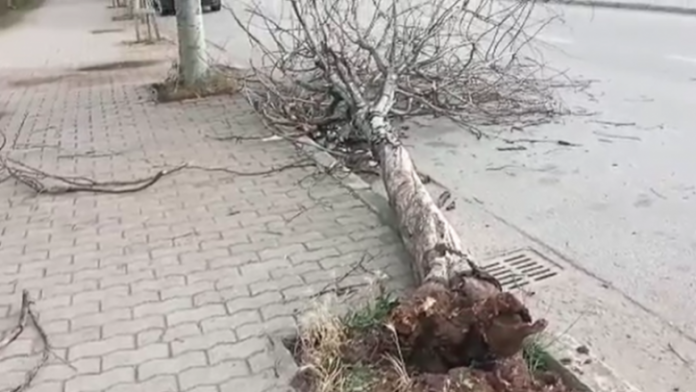 Qyteti duket thuajse i shkretë pa lëvizje, ndërsa erërat e forta kanë rrëzuar çdo gjë që mund të jetë e lehtë si boçet e pishave, apo degë pemësh etj.