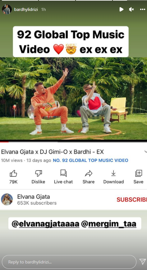 Për këtë sukses ka reaguar rep-artisti Bardhi, përmes një “InstaStory”