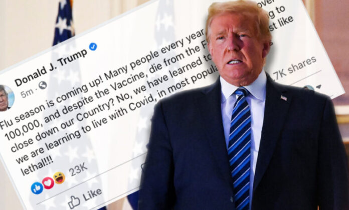 “Sezoni i gripit po afrohet! Shumë njerëz, ndonjëherë mbi 100,000 në vit, pavarësisht vaksinës, vdesin nga gripi. A do ta mbyllim vendin tonë? Jo, ne kemi mësuar të jetojmë me të, ashtu si po mësojmë të jetojmë me Covid, në shumicën e popullatave shumë më pak vdekjeprurës”, shkroi Trump.