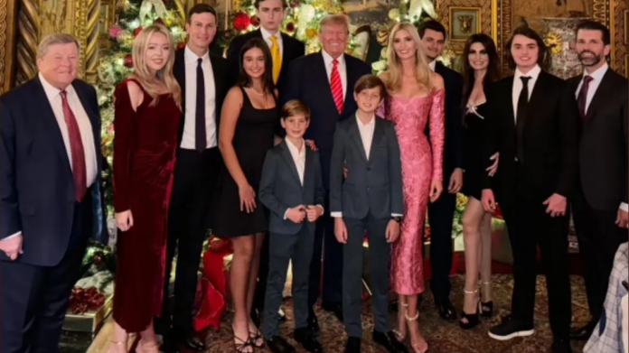 Fotografia tregon një Trump të buzëqeshur, 77 vjeç, me shumicën e fëmijëve të tij.