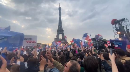 Shumë qytetarë francezë kanë dalë për të festuar fitoren e presidentit Emanuel Macron, i cili fitoi 58,2 përqind të votave, kundrejt kandidates së ekstremit të djathtë, Marine Le Pen, e cila fitoi 41,8 përqind të votave.