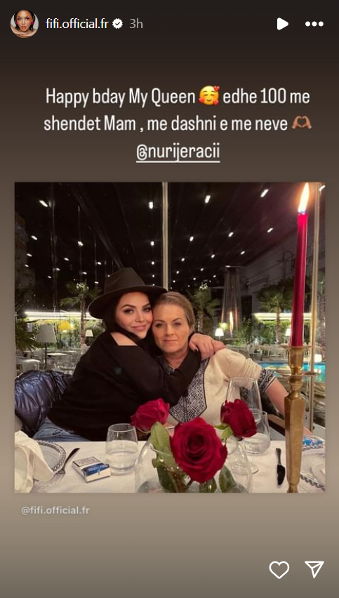 Fifi uron nënën për ditëlindje me fjalë zemre February 28, 2024 Share Facebook Twitter Pinterest WhatsApp Linkedin ReddIt Email Print Telegram VK LINE Viber Sot ka festë në shtëpinë e Fifit, kjo sepse nëna e saj feston ditëlindjen. Ajo i uron nënës në Instagram me fjalë zemre. “Shume urime mbreteresha ime, edhe 100 me shendet Mam, me dashni e me neve”, shkroi mes rreshtave këngëtarja. Urime! ARTIKUJ TË NGJASHËMMË SHUMË NGA AUTORI ShowBiz Rikthehen në vëmendje akuzat e ish-kunatave të Violetë Kukajt: E dërgoi vëllanë tonë në psikiatri për t’iu ikur borxheve ShowBiz “Ju dua shumë”, Edona Llaloshi pas votimit! ShowBiz Flet sërish babai i Malit, deklarata të forta për Violetën