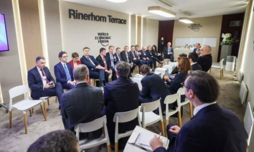 Fotoja e presidentit serb, Aleksandar Vuçiq nga paneli për Ballkanin Perëndimor në Davos shkaktoi reagime të shumta në rrjetet sociale.