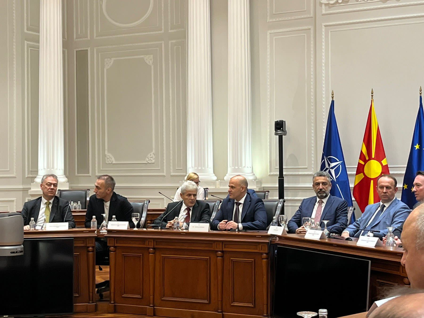 Prezent është kryeministri dhe lideri i LSDM-së, Dimitar Kovaçevski, ai i BDI-së, Ali Ahmeti, zëvenëskryeministri i parë, Artan Grubi, kreu i Alternativës Afrim Gashi, kryetari i PLD-së Goran Milevski dhe përfaqësues të partive tjera të koalicionit.