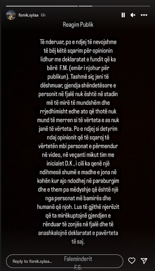 Një reagim e ka pasur edhe ish bashkëshorti i saj, Fisnik Syla.