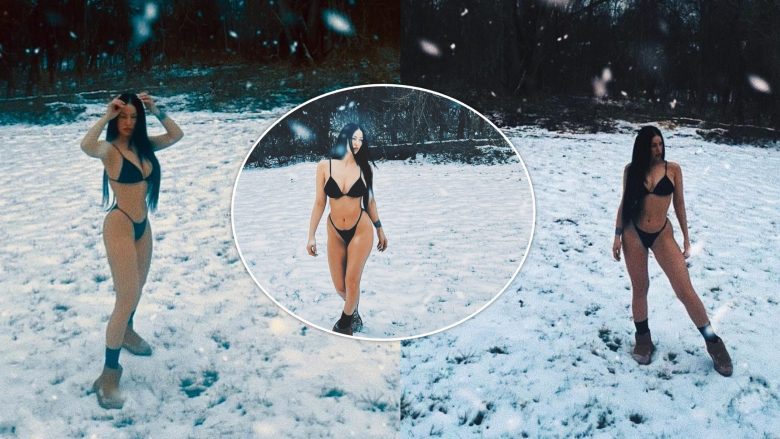 Flaka ka mahnitur me imazhet në të cilat ka sfiduar temperatura e ulëta, teksa pozoi e veshur vetëm në bikini në mes të borës.