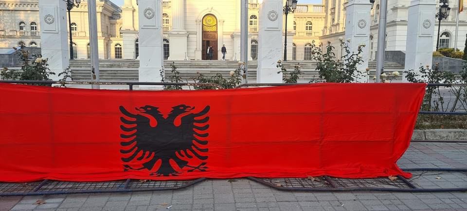 Maqedoni Flamuri shqiptar vendoset para Qeverisë në Shkup (Video)