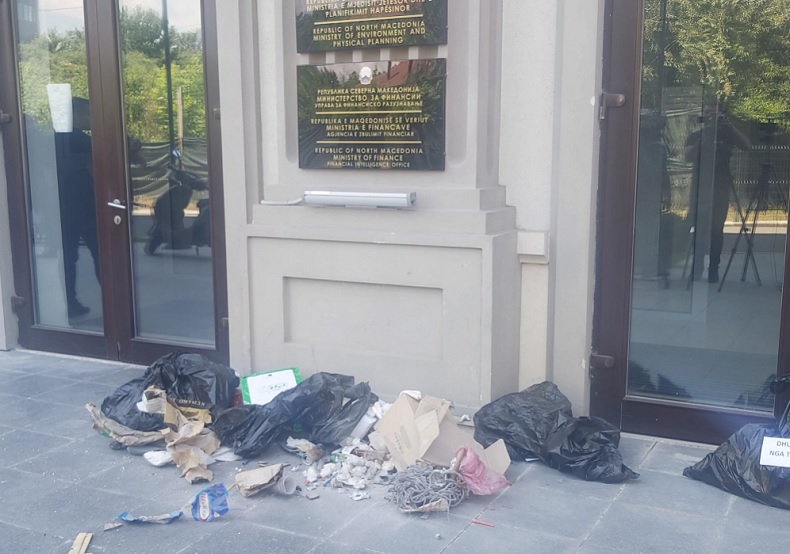 “Në shenjë proteste, ne, FRASH, kemi sjellë para ministrise sasi simbolike të mbeturinave që janë si pasojë e keqmenaxhimit nga ana e institucioneve. Erën e keqe e këtë pamje qytetarët i shohin dhe ndjejnë për çdo ditë”, tha Ajdini./News33/