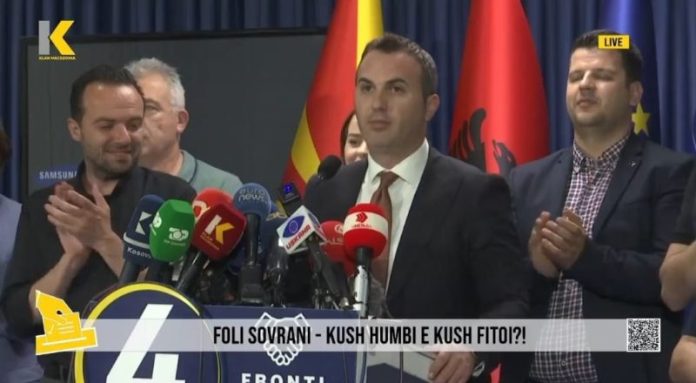 Arbër Ademi nga Fronti Europian në Press Konferencë tha se janë fitues me mbi 30 mijë vota në epërsi deri më tani kur janë numëruar 50 për qind të votave.