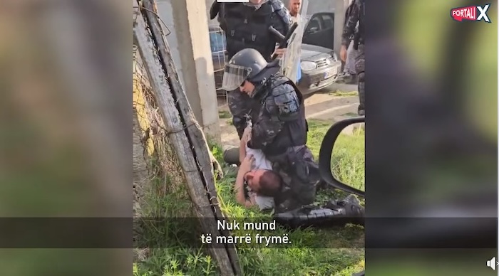 Nga pamjet e publikuara shihet sjella brutale e njësiteve speciale, duke i shtrënguar fytin gazetarit Saliu, i cili klith se “nuk po mundem të marrë frymë”.
