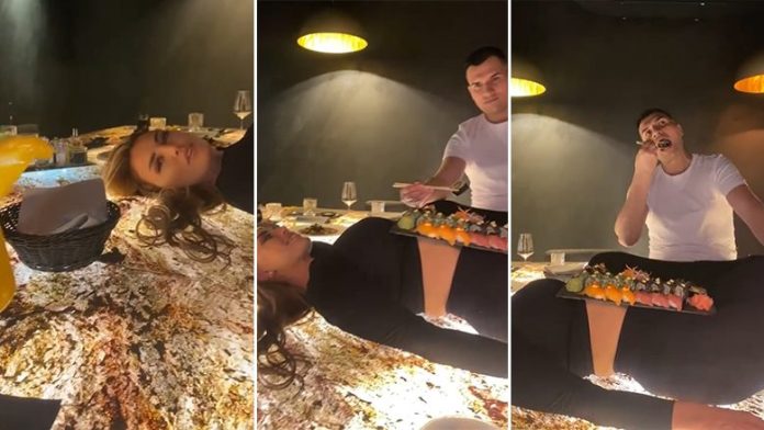 Genta Ismajli publikon një video me burrin e saj në TikTok, ku ai ushqehet nga një pjatë e servuar mbi trupin e saj në tavolinë