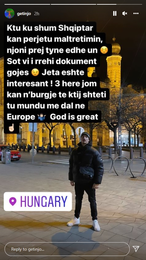 “Këtu ku shumë shqiptarë kanë përjetuar maltretimin, njëri prej tyre edhe unë. Sot vij e i rrahë me dokumente gojës. Jeta është interesante! Tri herë kam qenë në burgje të këtij shteti, duke u munduar të dalë në Evropë. Zoti është i mrekullueshëm”, ka shkruar Getinjo në InstaStory.