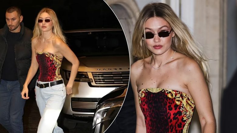 Më herët në mbrëmje, të gjithë sytë ishin te Gigi, teksa ajo hyri në pistën e “Versace”.