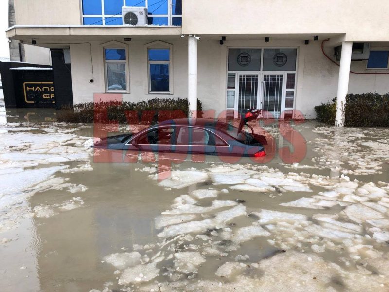 Në këto fotografi shihet edhe një veturë se si është fundosur nga reshjet e shiut.