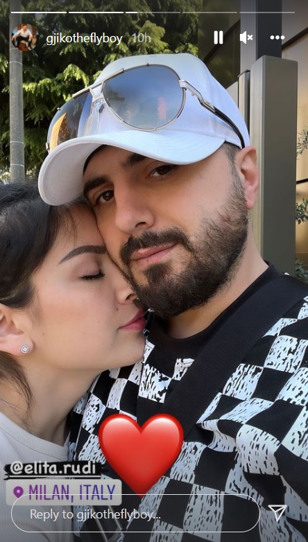 Gjiko shfaqet i lumtur në krahët e Elitës gjatë udhëtimit të tyre në Milano