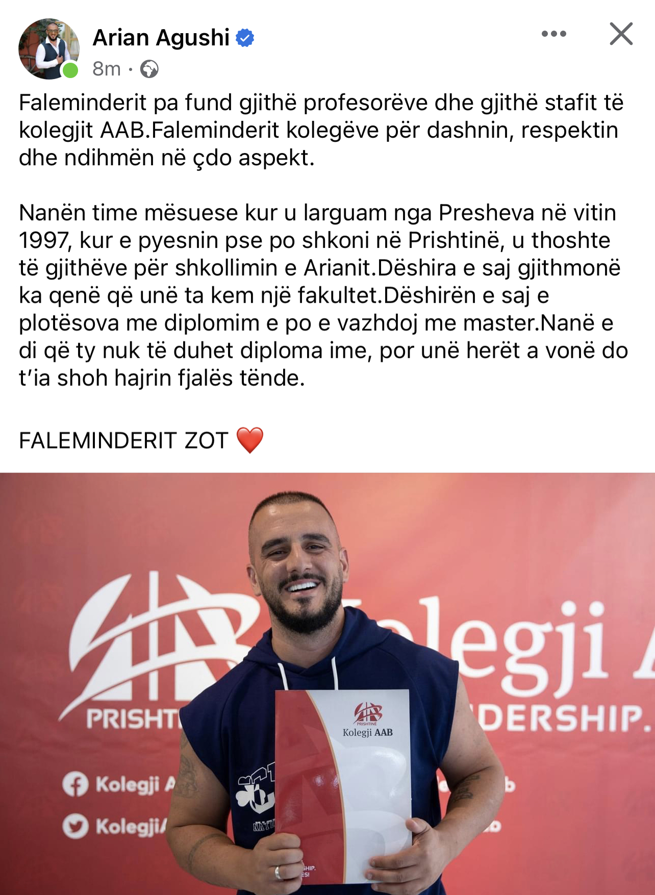 Ai ia ka realizuar ëndrrën nënës së tij.