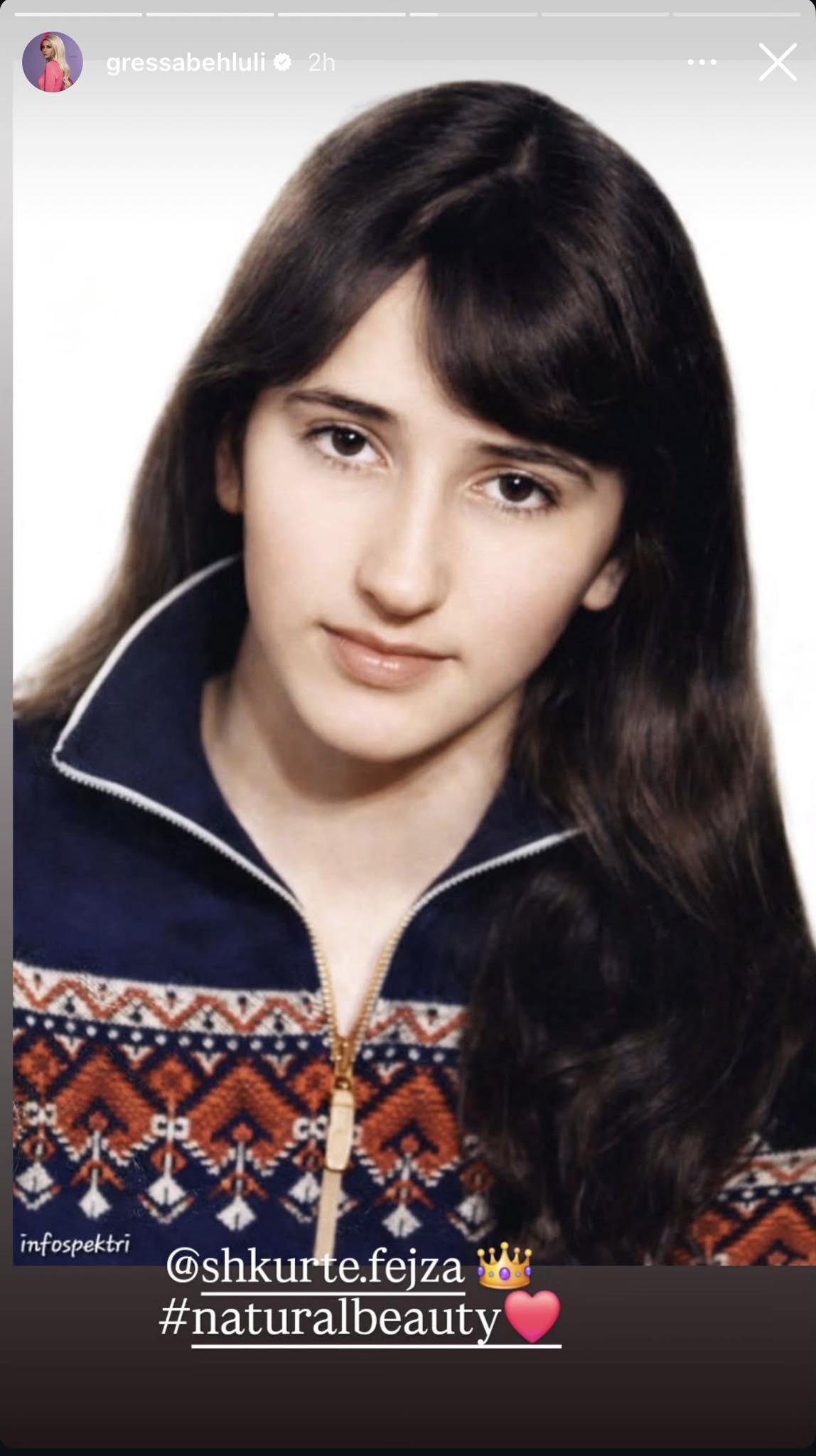 Këngëtarja ka ndarë në Instastory një fotografi nga rinia e hershme e nënës së saj, Shkurte Fejza. Krahas imazhit, ajo ka shkruar “Natural Beauty”, duke vënë theksin te bukuria natyrale.