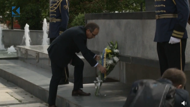 Përveç para shtatores së Rugovës, Hoti ka nderuar edhe ushtarët e NATO-s që kanë rënë në Kosovë si dhe ka vendosur lule edhe te shtatorja e heroit Zahir Pajaziti.