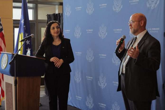 Ambasadori amerikan në Prishtinë, Jeff Hovenier, ka mirëpritur sot, presidenten e Kosovës, Vjosa Osmani, në selinë e ambasadës.