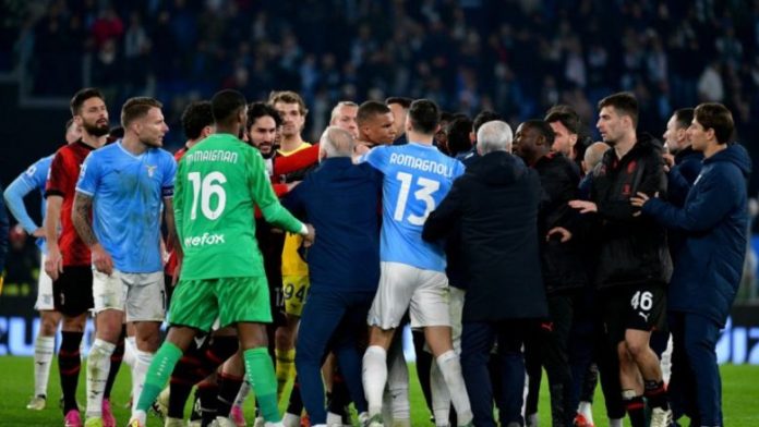 Lazio tashmë ishin tërbuar me gjyqtarin Marco Di Bello pas dy incidenteve të para, ku Mike Maignan u përplas me Taty Castellanos në zonën e penalltisë dhe Luca Pellegrini mori kartonin e dytë të verdhë.