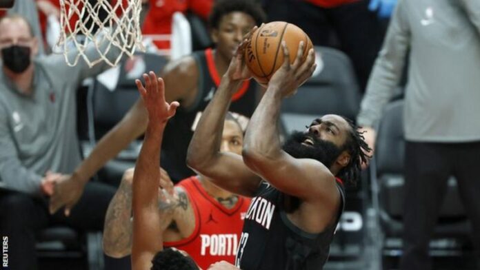 Harden, i cili pati një paraqitje fantastike, përfundoi me 44 pikë dhe 17 asistime, një nga paraqitjet më të larta në karrierë, ai u kthye pasi u gjobit me 50 mijë dollarë nga NBA për shkelje të protokolleve të COVID-19.