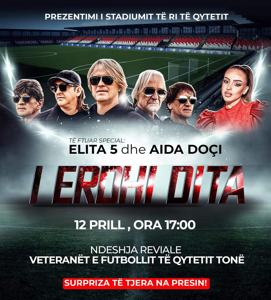 “ I ERDHI DITA! Po… po… dita erdhi! Stadiumi po bëhet! Të premten, me 12 prill, me fillim nga ora 17:00, me koncert madhështor nën përcjellje të muzikës së pastër shqipe të ELITA 5 dhe Aida Doçit, bashkërisht do të prezentojmë projektin e stadiumit të qytetit tonë. MOS MUNGO, EJA EDHE TI, BËHU PJESË E HISTORISË!”, ka shkruar Kasami.
