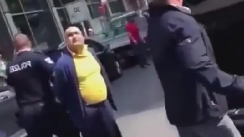 Nga një video që qarkulloi në internet shihet një burrë me një bluzë të verdhë dhe tuta të kaltra të errëta dhe para se ta fusin në pjesën e pasme të një veture të policisë, ai dëgjohet duke bërtitur në gjermanisht “Më ndihmo! Më ndihmo!
