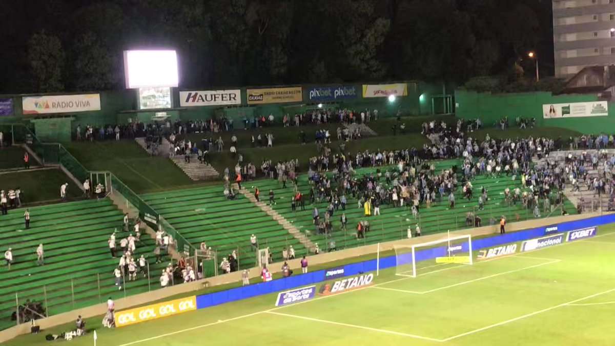 Gjatë ndeshjes Gremio-Santos, tifozët e ekipit mysafir janë ngjitur në hekurat dhe kanë hedhur sendet drejt atyre të Gremios.