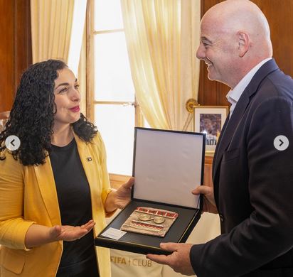 Presidenti i FIFA-s, Gianni Infantino, njofton se ka mirëpritur Presidenten e Republikës së Kosovës, Vjosa Osmani, në zyrën e FIFA-s në Paris.