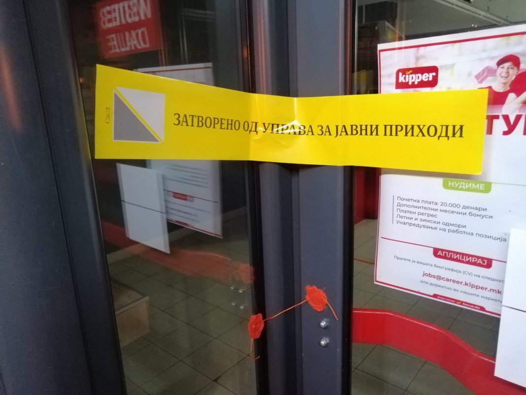 Shirita të verdhë nëpër dyert e disa marketeve në vend. Janë mbyllur nga Drejtoria e të Ardhurave Publike, por zëvendësdrejtori Abdulselam Selami mohon që këtyre t’u jetë ndaluar veprimtaria, por janë mbyllur vetë gjatë procesit të kontrollit nëse po respektohet masa “zero % TVSH” për produktet bazë.