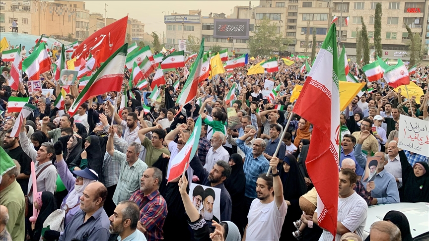 Duke mbajtur postera të udhëheqësit iranian Ajatollah Ali Khamenei, i cili është kërcënuar nga SHBA-ja, iranianët brohoritën slogane të tilla si “Turpi është larg nesh”, “Vdekje Amerikës”, “Vdekje Izraelit” dhe “Asnjë tolerim”.