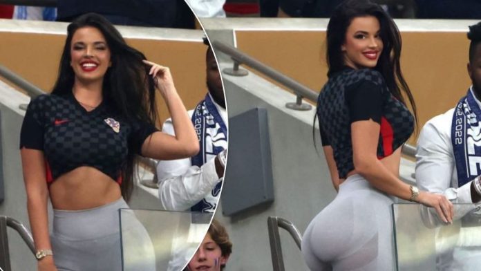 Me makijazh të theksuar dhe flokët e zeza të lëshuara sipër, bukuroshja kroate dukej në super formë në foto nga stadiumi Lusail.