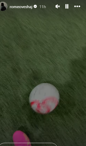Pas ndarjes, Romeo shfaqet në një palestër sporti në mbrëmje duke luajtur futboll.