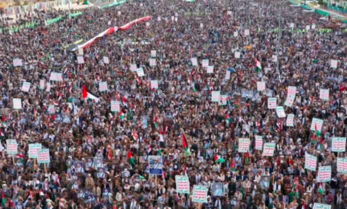 Mijëra njerëz u mblodhën në kryeqytetin e Sanaa në Jemen, në një tubim masiv për të shprehur solidaritetin me popullin palestinez në Rripin e Gazës.