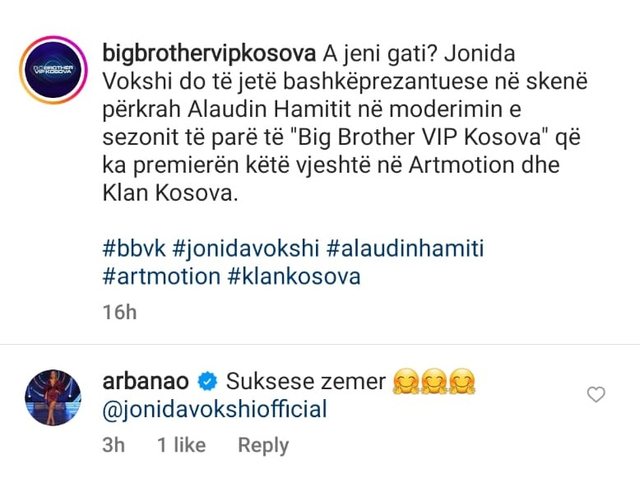 Një urim nga një prezantuese të suksesshme e mori Jonida Vokshi.