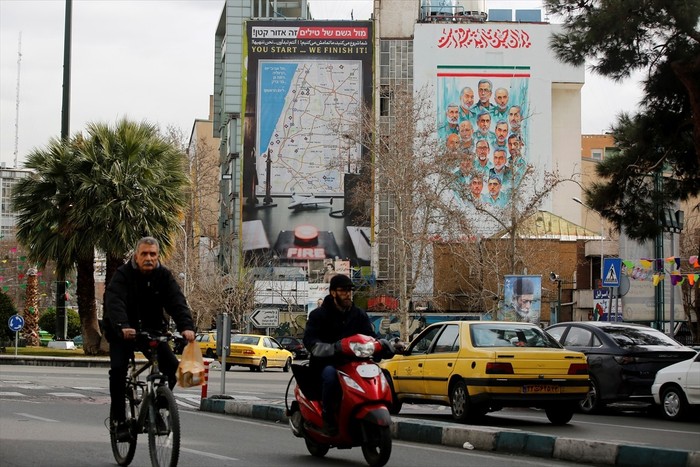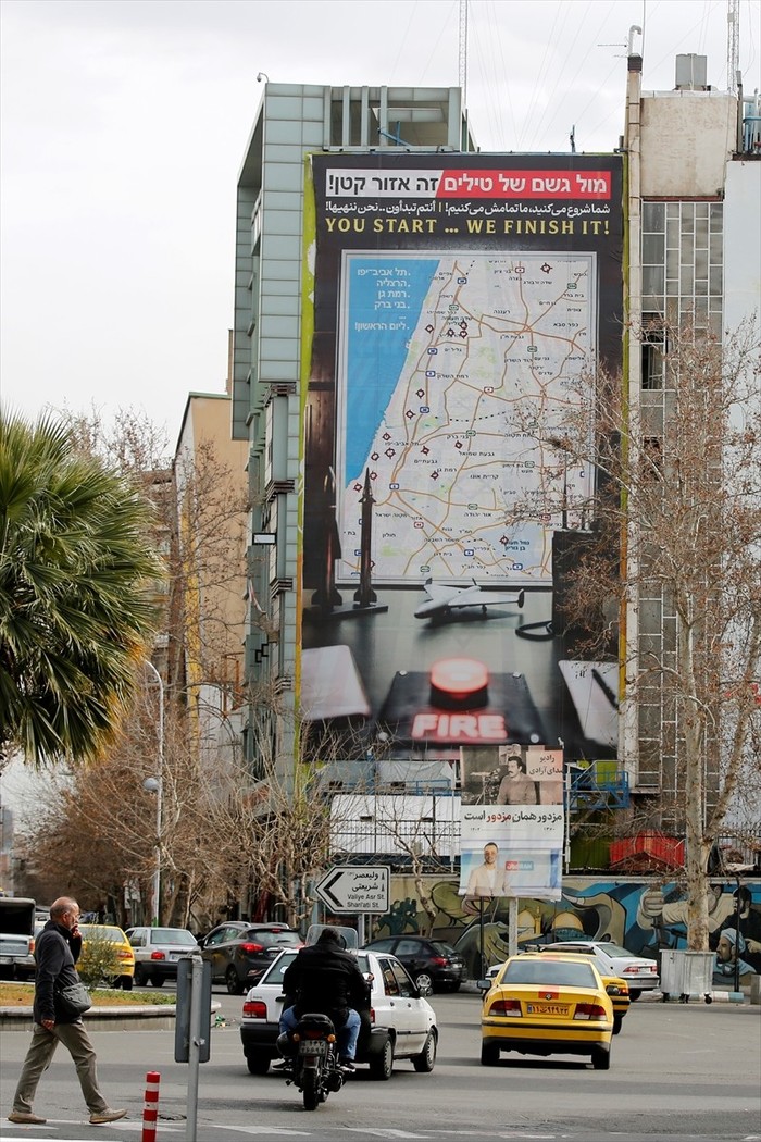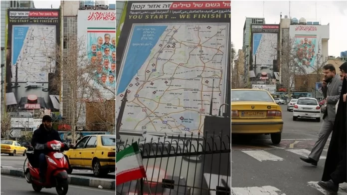 Një billboard në Sheshin Palestinë në qendër të Teheranit thuhet se vinte me kërcënime me sulme hakmarrëse me raketa balistike ndaj Izraelit nëse IDF ose ushtria amerikane sulmojnë Iranin.