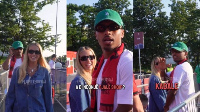 Së fundmi, çifti u ndalua nga një tifoz shqiptar në Gjermani dhe ai i shtroi Adeyemit një pyetje: “A di ndonjë fjalë në gjuhën shqipe?”.