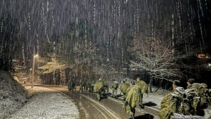 “Një tjetër marshim i suksesshëm prej 12.8 km i përfunduar nga kadetët tanë në rrethinën e liqenit të Batllavës, përkundër kushteve të rënda atmosferike me temperatura të ulëta dhe reshje të dendura bore. Me disiplinë, vendosmëri dhe një frymë të fortë bashkëpunimi, ata dëshmuan edhe një herë përgatitjen dhe përkushtimin e udhëheqësve tanë të ardhshëm ushtarak”, ka shkruar Maqedonci.