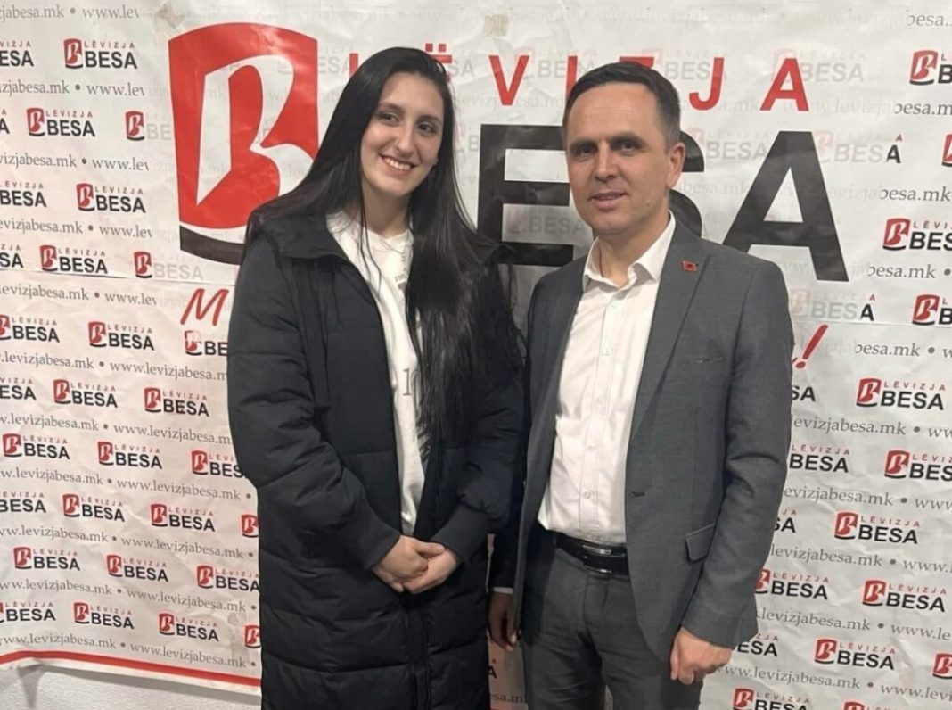 “Gresa Mustafai nga Struga tashmë anëtarja më e re e Lëvizjes BESA dhe frontit opozitar në vend. Një sportiste e talentuar, kampione shtetërore si dhe e kurorëzuar me medalje të artë në kampionatin shtetëror në karate si dhe femra europiane e vitit. Me përkushtimin e saj, talentin dhe konkurrencën, Gresa tashmë dëshiron të japë kontributin e saj edhe në politikë, në Kalanë e Shpresës dhe të Dinjitetit!