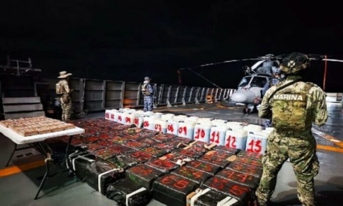 Marina meksikane njoftoi dje, të premten, sekuestrimin në Paqësor të 8.3 tonëve drogë, një sasi rekord e kapur në Meksikë në një operacion në det.