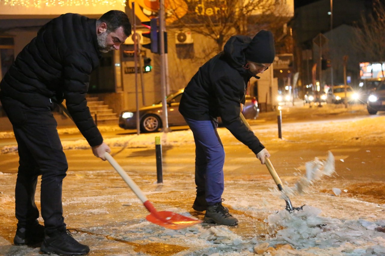 Kreu i Komunës së Tetovës, Bilall Kasami mbrëmjen e djeshme së bashku me punonjësit e ndërmarrjes komunale ka pastruar rrugët e qytetit nga bora dhe ngricat. Nga fotografitë e publikuara shihet se si Kasami së bashku me drejtorin e NPK Tetova, Nuresdin Fetai me lopata në duar pastrojnë trotuaret nga ngrica dhe bora.