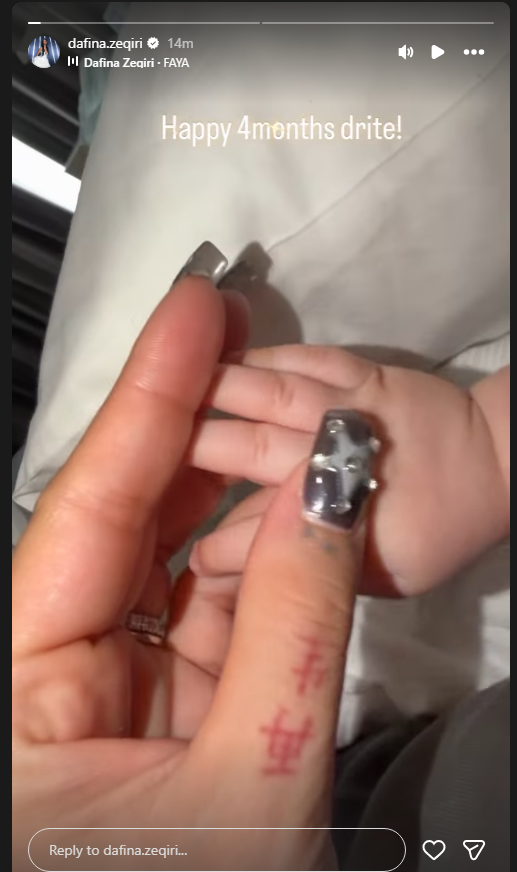 “Urime 4-muaj drite!”, ka shkruar teksa e kap për dore të birin.
