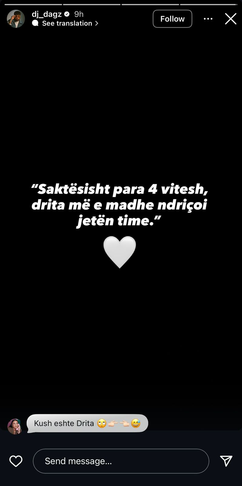 Në një postim në Instagram Story, ai shkroi: