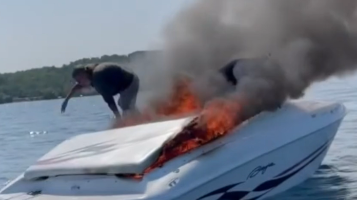Dy persona në një varkë në Traverse Bay, Michigan u desh të hidheshin në ujë kur anija e tyre u përfshi nga flakët.