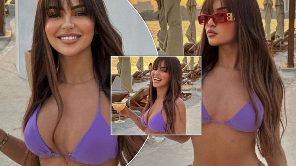 Bukuroshja ka zgjedhur një palë bikini ngjyrë vjollcë, ndonëse këtë kohë mban dhe një stil interesant të flokëve në po atë ngjyrë.
