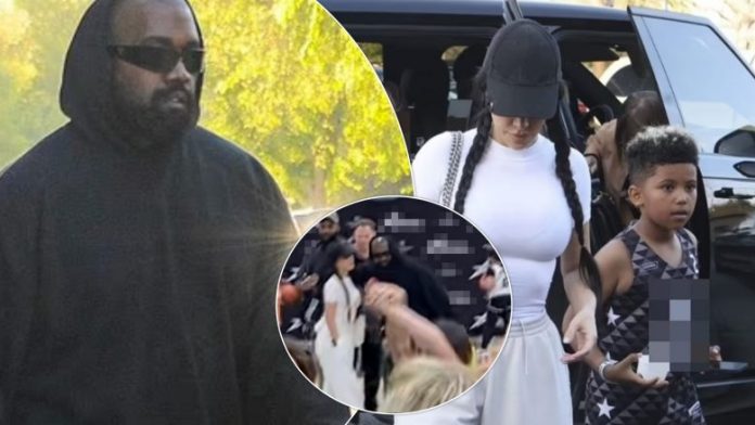 Kim Kardashian dhe ish-bashkëshorti Kanye West u përballën të premten në mbrëmje në ndeshjen e basketbollit të djalit të tyre Saint.