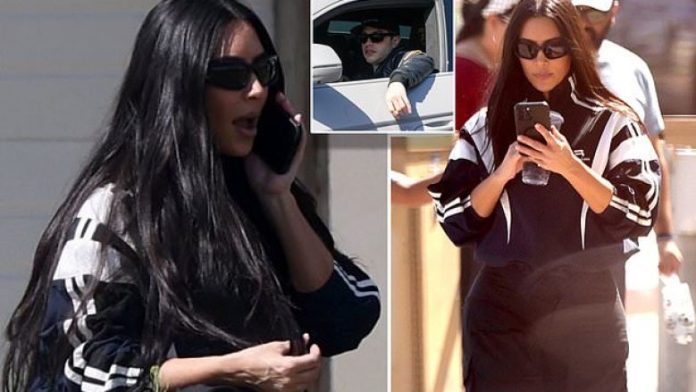 Kim Kardashian u shfaq e tensionuar dhe e ngjitur pas telefonit të saj të dielën, ndërsa grindjet e saj publike me ish-bashkëshortin Kanye West arritën majat kur i dashuri i saj i ri, Pete Davidson më në fund iu kundërpërgjigj reperit.