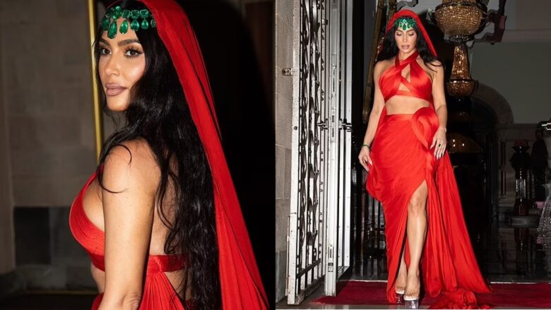 Kim krijoi imazhe të Princeshës Jasmine të Aladdin me një fustan të kuq mahnitës teksa merrte pjesë në dasmën e Anant Ambani me trashëgimtaren e farmaceutikës Radhika Merchant