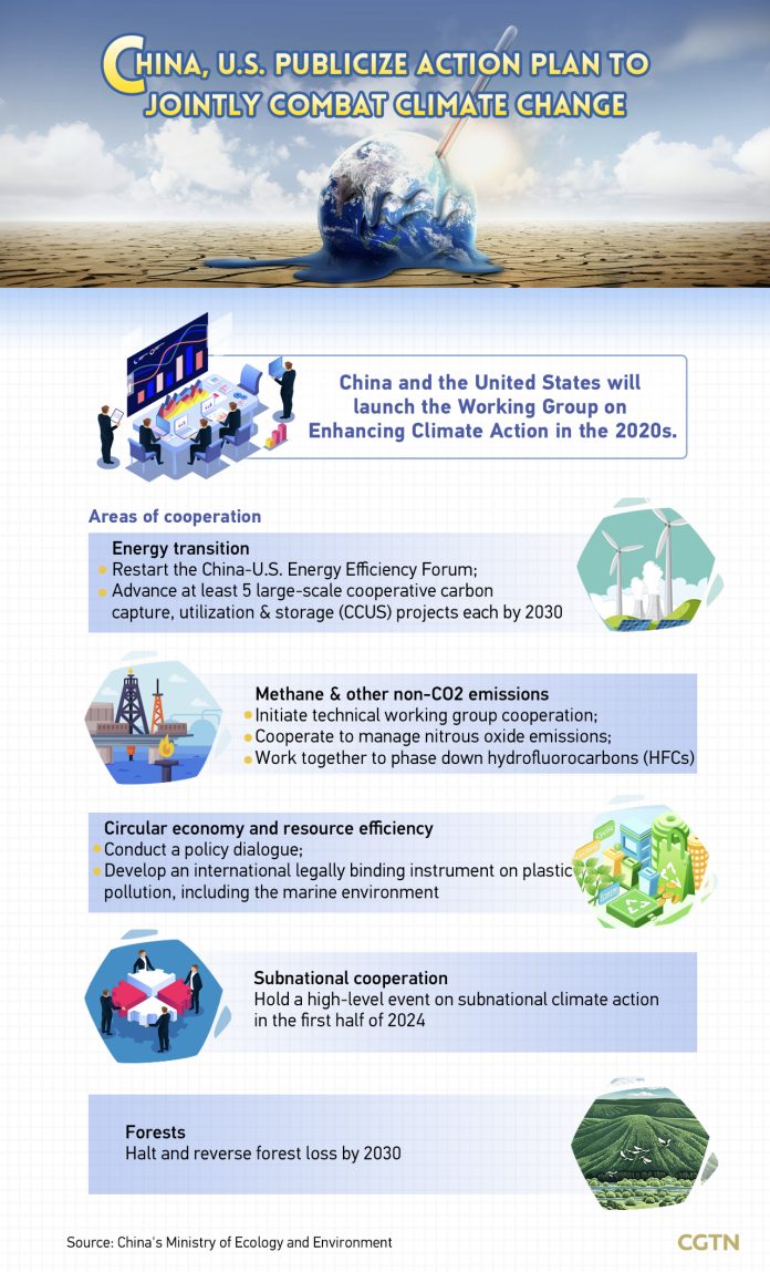 Kina dhe ShBA-ja kanë publikuar një deklaratë të përbashkët për forcimin e bashkëpunimit për përballimin e krizës klimatike dhe do të krijojnë një grup pune për bashkëpunimin klimatik, njoftoi të mërkurën Ministria e Ekologjisë dhe e Mjedisit e Kinës.